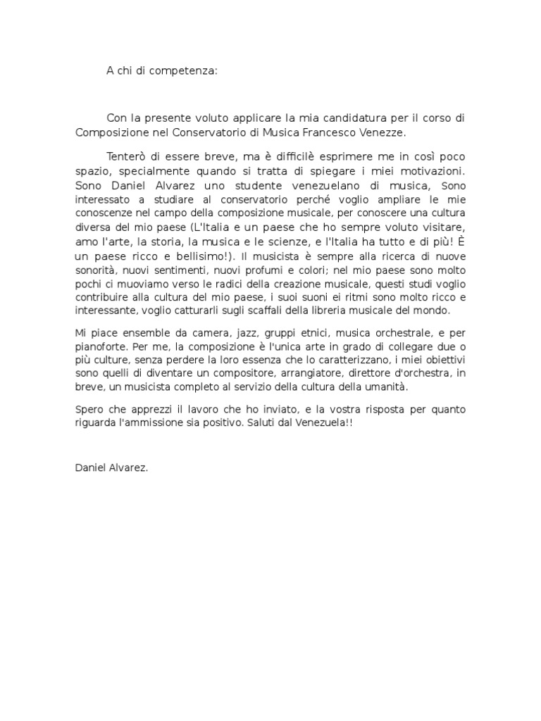 Come Scrivere una Lettera Motivazionale: 14 Passaggi - wikiHow Molte fonti professionali raccomandano di non usare la formula "A chi di competenza", che potrebbe risultare impersonale e disinteressata. 2. Presentati brevemente. ... Controlla ortografia e grammatica prima di inviare la lettera. Quando pensi che sia pronta per l'invio, assicurati di darle un'ultima occhiata generale cercando gli errori ...