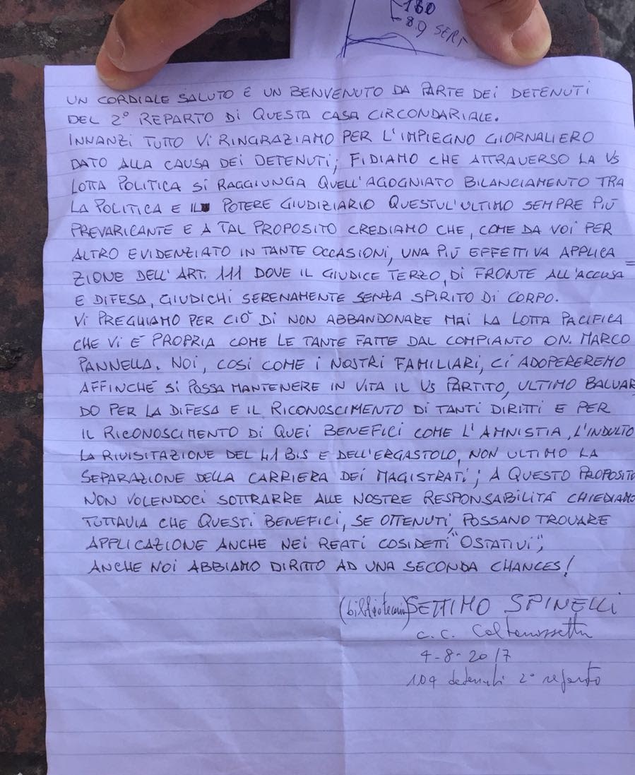 LETTERA AD UN DETENUTO ITALIANO NEL 2011 » Pensalibero.it LETTERA AD UN DETENUTO ITALIANO NEL 2011. Nella vita chi sbaglia paga, ed è giusto che sia cosi, ma oggi c'è chi purtroppo paga troppo, e chi troppo poco. Non è rispettata assolutamente la misura della giustizia. Non esiste la giustizia. O meglio esiste solo per qualcuno. Di Giuseppe Ferone. Ti scrivo questa lettera perchè spero ti faccia ...