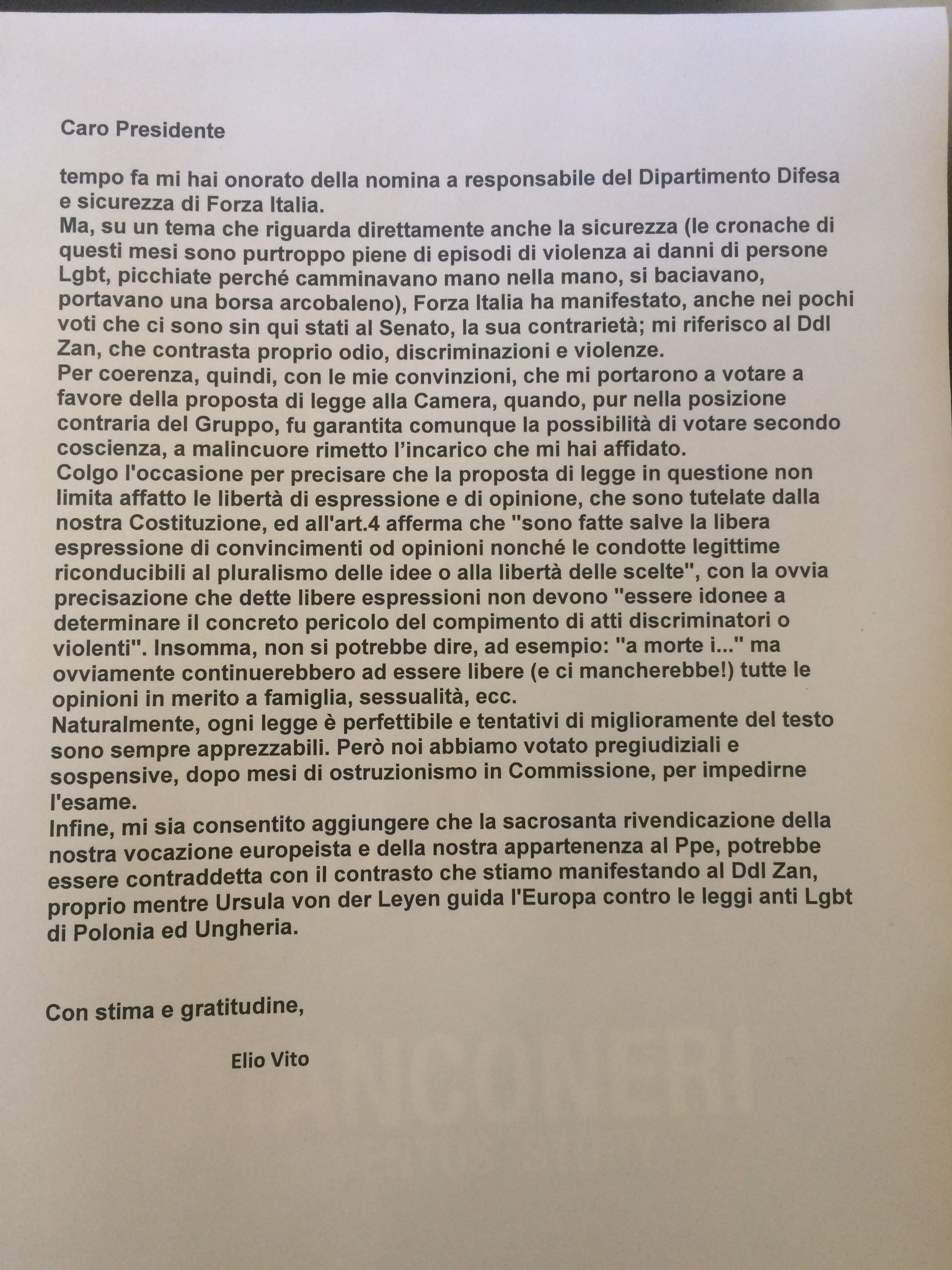 43 lettera di stima e gratitudine